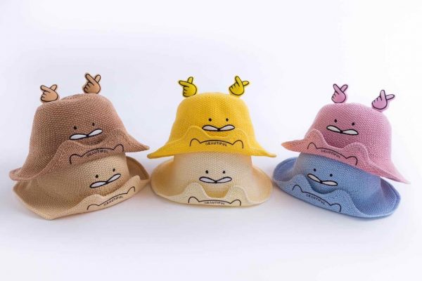 Kids’ Sun Hat – New Arrival 2020 Spring/Summer, Cotton Knit with Hollow Design, Cartoon-themed Japanese-style Bucket Hat